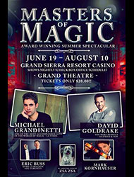 Two Award winning master magicians performing amazing grand illusions on the world's largest indoor stage at the Grand Sierra Resort in Reno Nevada. The show had rave reviews to packed houses!